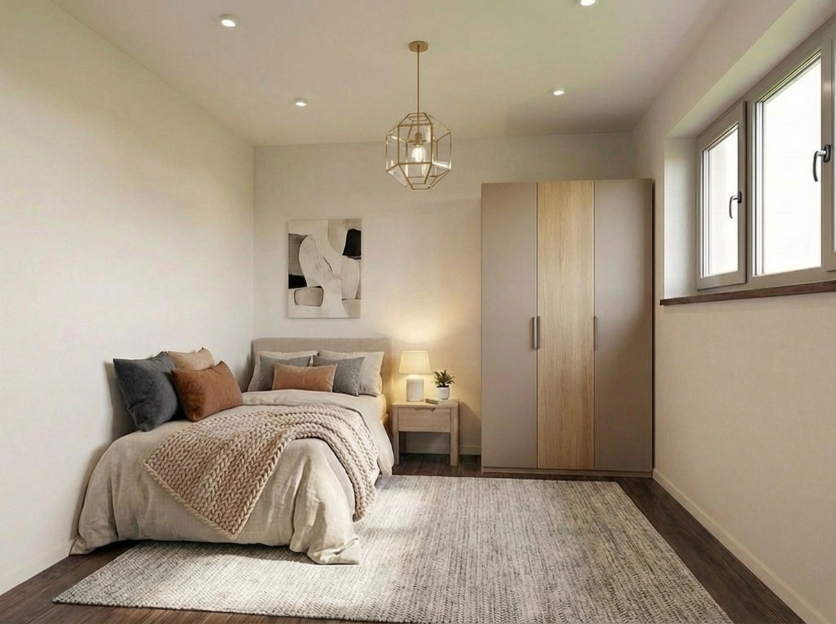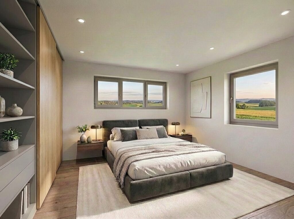 Dazu kommen zwei weitere Zimmer, die Sie flexibel nutzen können – als Schlafzimmer, Arbeitsbereich oder Kinderzimmer. Die klare Trennung der Bereiche sorgt dafür, dass jeder Raum seine Funktion erfüllt – ohne Durchgänge, ohne Platzverlust und ohne Kompromisse im Alltag.